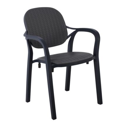 TROPEA Πολυθρόνα Τραπεζαρίας Κήπου – Βεράντας Στοιβαζόμενη, PP Απόχρωση Ανθρακί