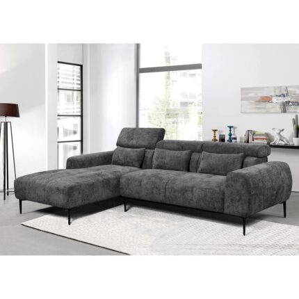 SECTOR Καναπές Σαλονιού Αριστερή Γωνία, Ανακλινόμενα Κεφαλάρια, Ύφασμα Ανθρακί
