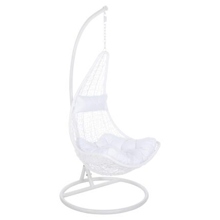 MACAN-II Κρεμαστή Πολυθρόνα, Wicker Grey-White, Μέταλλο Βαφή Άσπρο, Μαξιλάρι Γκρι