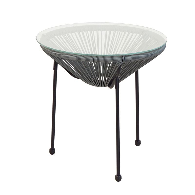 ACAPULCO Τραπεζάκι Μέταλλο Βαφή Μαύρο, Plastic Rattan Γκρι