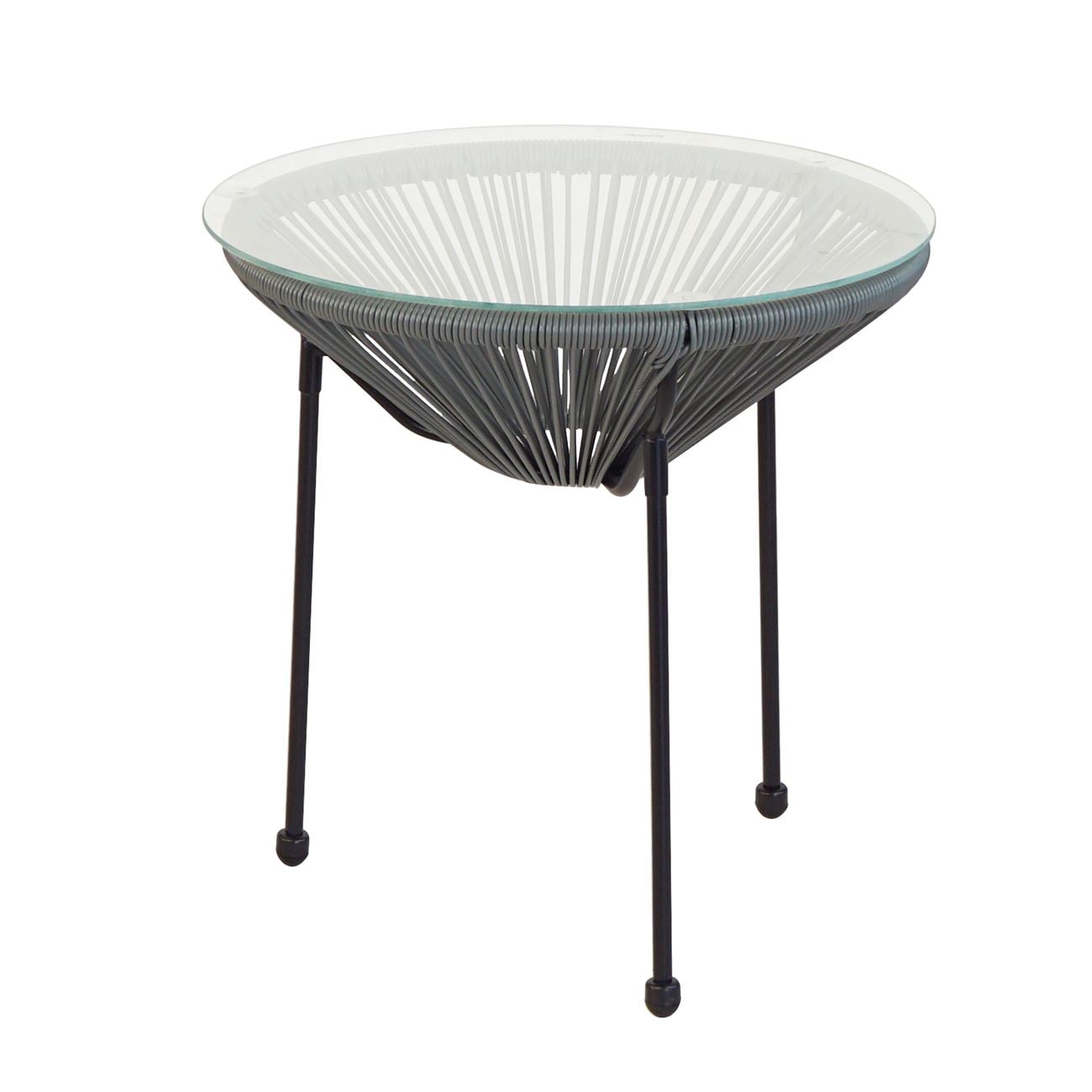 Ε246,4 ACAPULCO Τραπ.Φ.50cm Μετ.Μαύρo, Plastic Rattan Γκρι