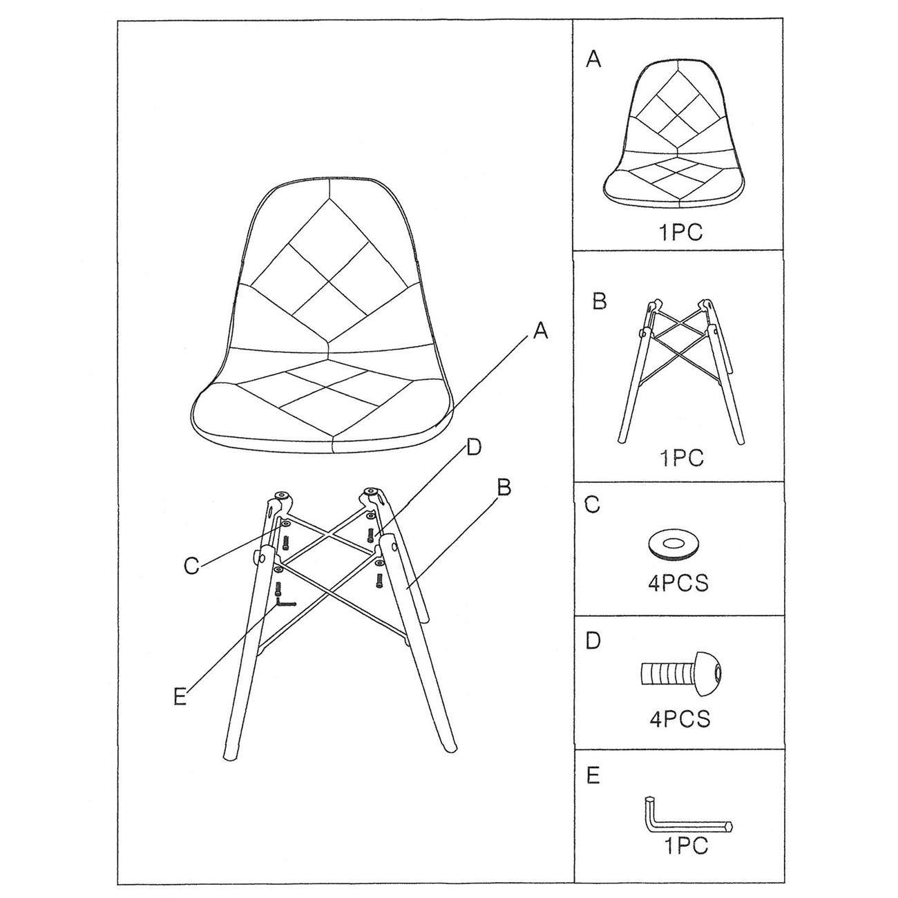 ART Wood Καρέκλα Τραπεζαρίας, Πόδια Οξιά, Κάθισμα PP με Ύφασμα Patchwork