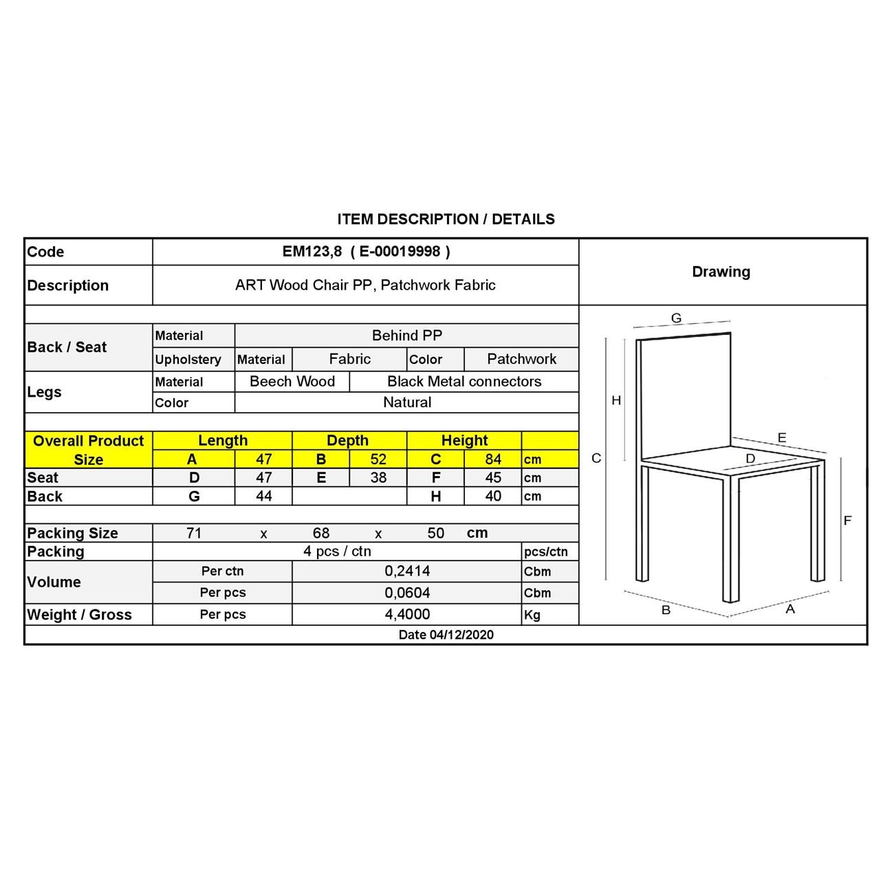ΕΜ123,8 ART Wood Καρέκλα PP, Ύφασμα Patchwork