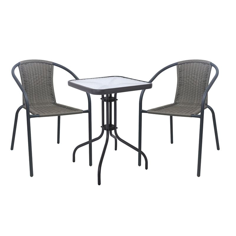 Ε240,10W BALENO-W Set (Τραπ.60x60cm+2 Πολ) Μεταλ.Ανθρακί/Mixed Grey Wicker