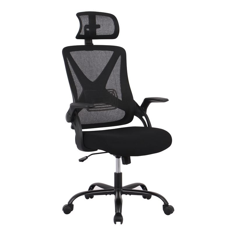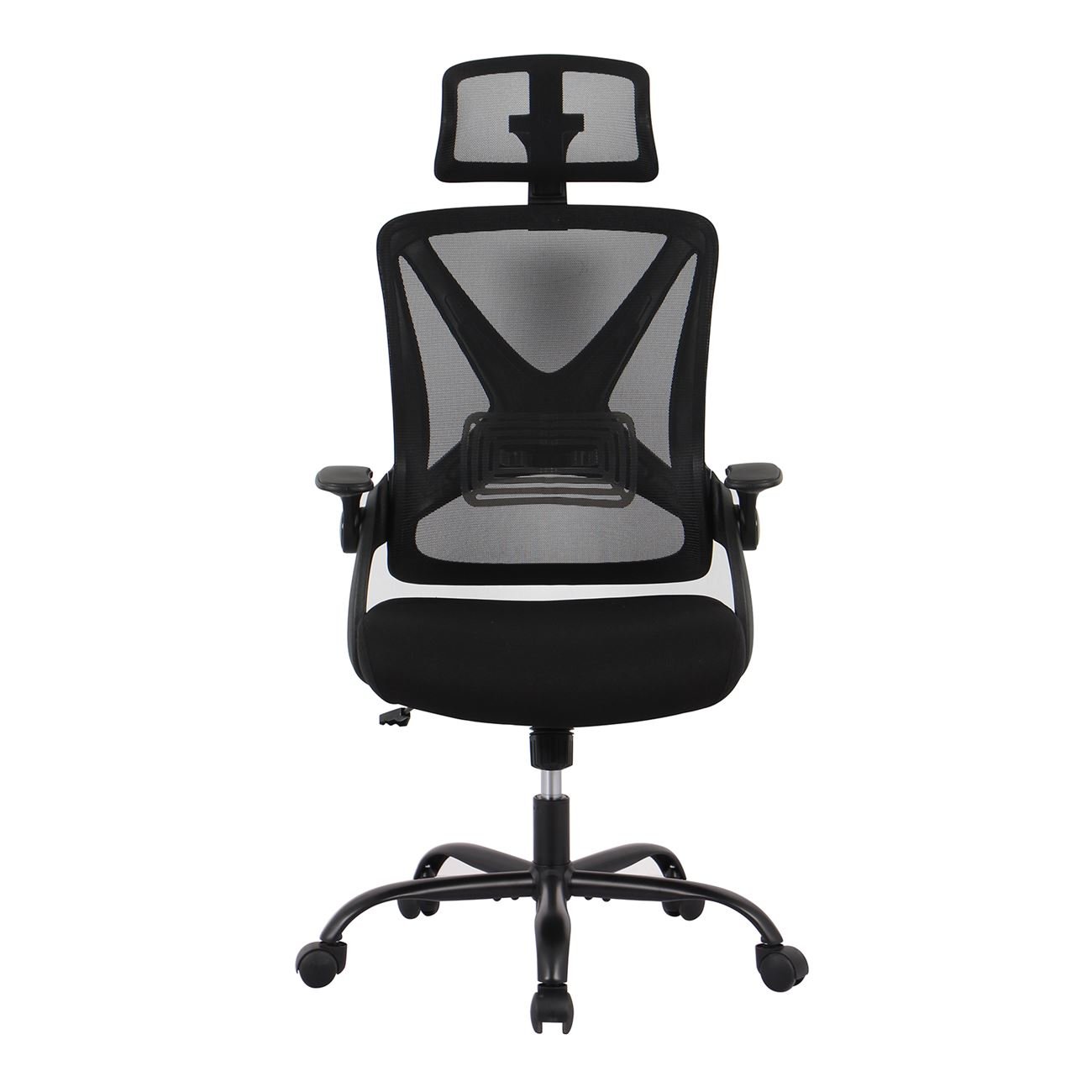 BF2040 Πολυθρόνα Γραφείου Διευθυντή – Ύφασμα & Mesh Μαύρο, Μεταλλική KD βάση