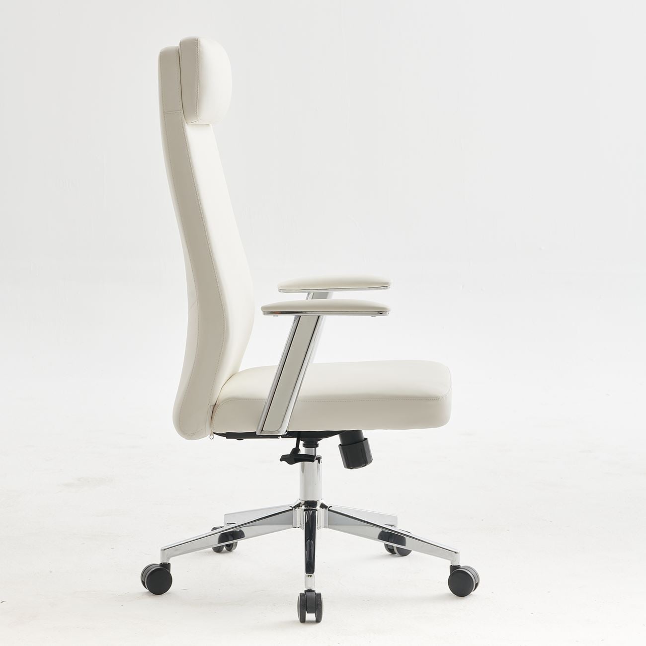 BF8800 Πολυθρόνα Γραφείου Διευθυντή, Pu Άσπρο, Βάση & Μπράτσα Χρώμιο