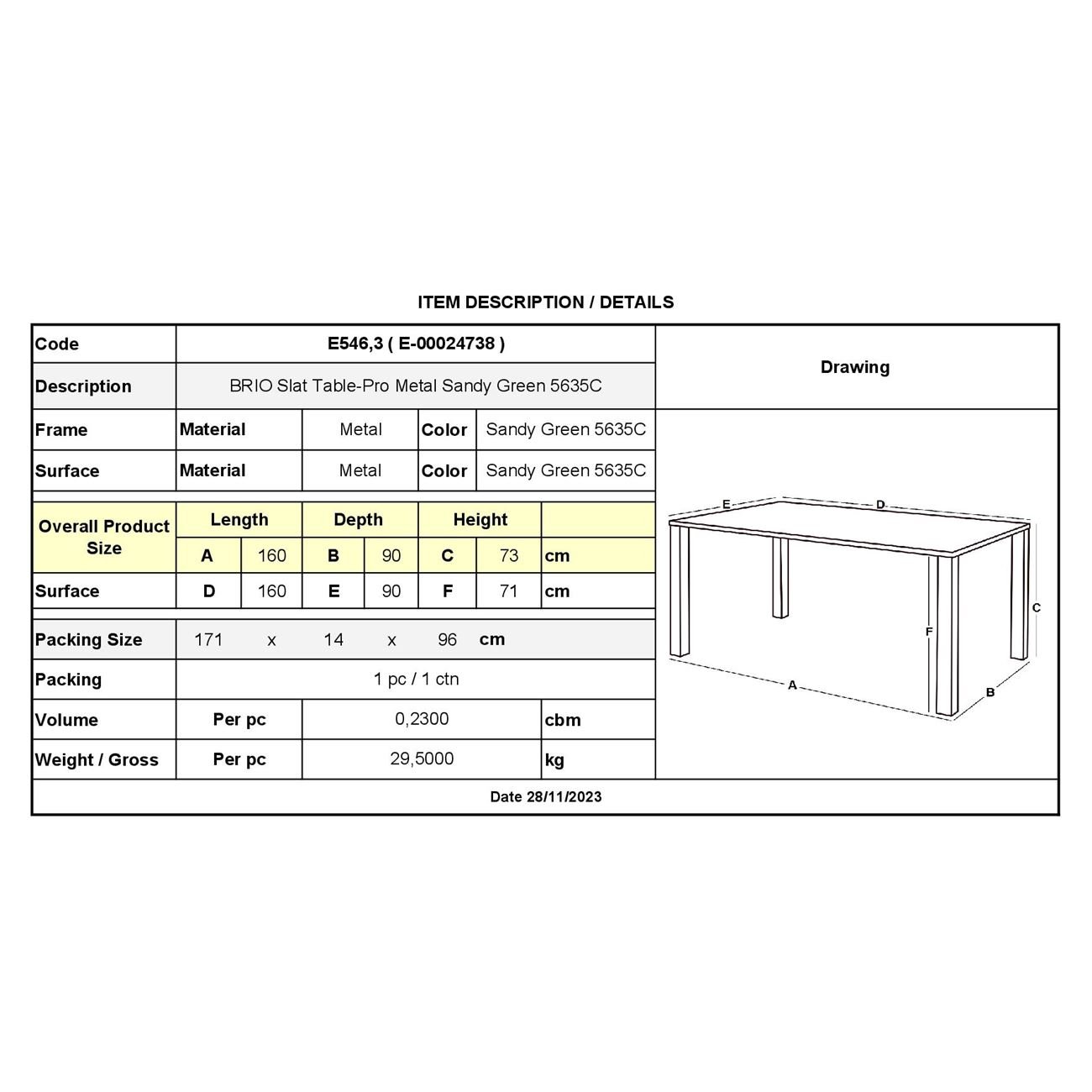Ε546,3 BRIO Slat Τραπέζι-Pro 160x90cm Μεταλλικό Sandy Green 5635C