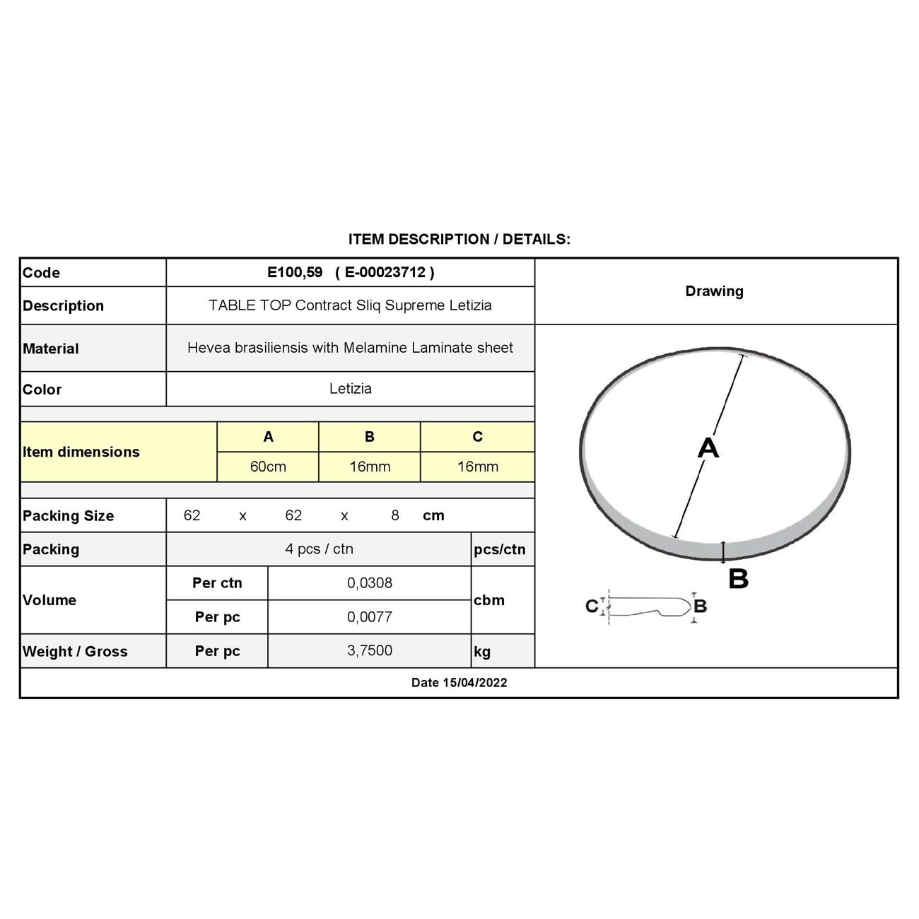 Επιφάνεια Τραπεζιού Φ60cm