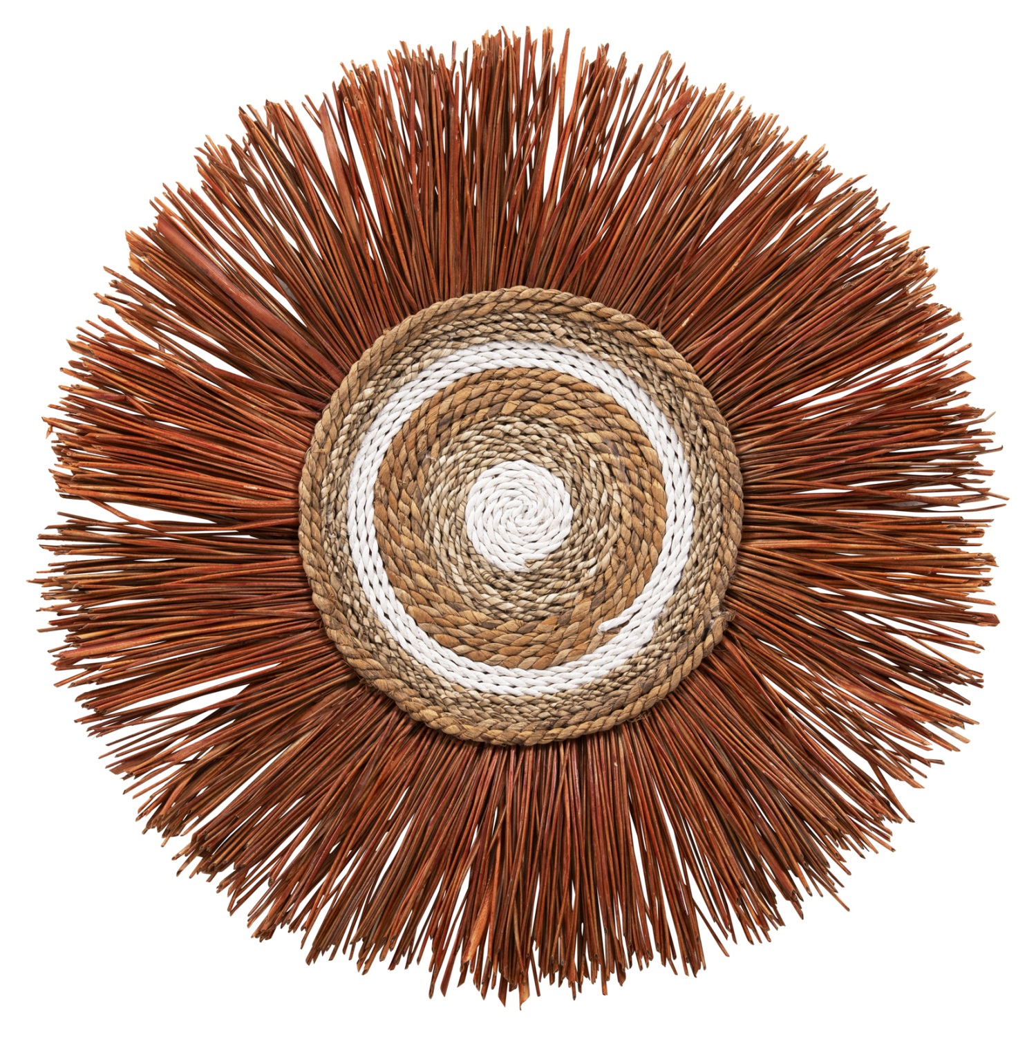 Το διακοσμητικό αυτό είναι κατασκευασμένο από κομμάτια καλαμιάς με ίνες από φλοιούς μπανάνας στο εμπρός μέρος.