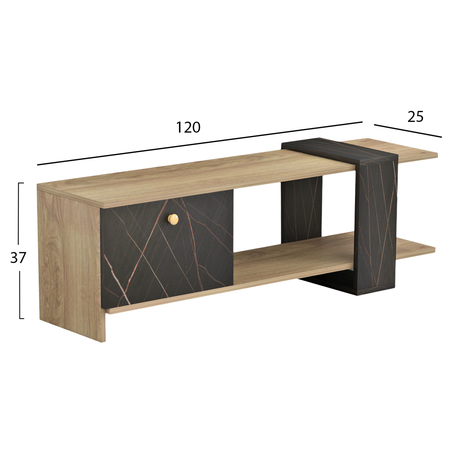 ΕΠΙΠΛΟ ΤΗΛΕΟΡΑΣΗΣ HENRIETTE HM8900.12 ΜΕΛΑΜΙΝΗ ΣΕ ΦΥΣΙΚΟ-ΜΑΥΡΟ ΜΑΡΜΑΡΟ 120×28,5×37,5Υεκ.