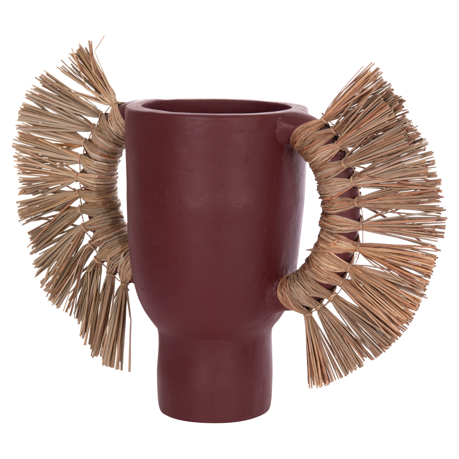 Το επιτραπέζιο διακοσμητικό βάζο ALICA είναι ένα πολύ ιδιαίτερο διακοσμητικό στοιχείο για κάθε χώρο. Είναι κατασκευασμένο εξολοκλήρου από τερακότα σε ΒΥΣΣΙΝΙ χρώμα, ενώ διαθέτει και δύο χερούλια επενδυμένα με αποξηραμένο grass, και ένα φαρδύ στόμιο.