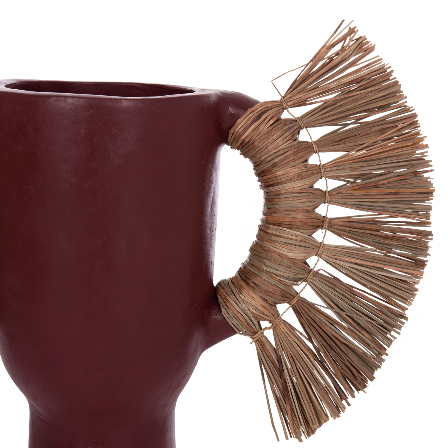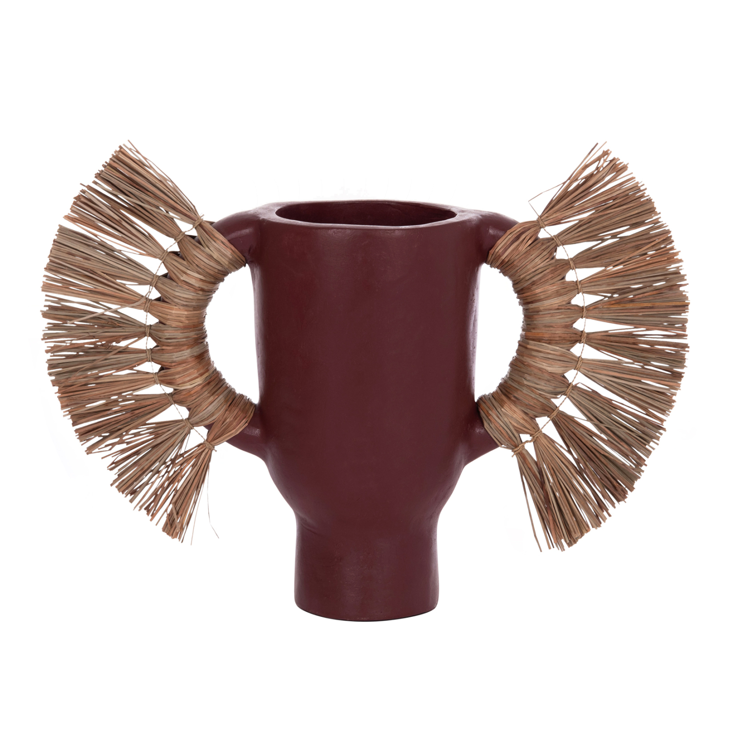 Το επιτραπέζιο διακοσμητικό βάζο ALICA είναι ένα πολύ ιδιαίτερο διακοσμητικό στοιχείο για κάθε χώρο. Είναι κατασκευασμένο εξολοκλήρου από τερακότα σε ΒΥΣΣΙΝΙ χρώμα, ενώ διαθέτει και δύο χερούλια επενδυμένα με αποξηραμένο grass, και ένα σχετικά φαρδύ στόμιο.