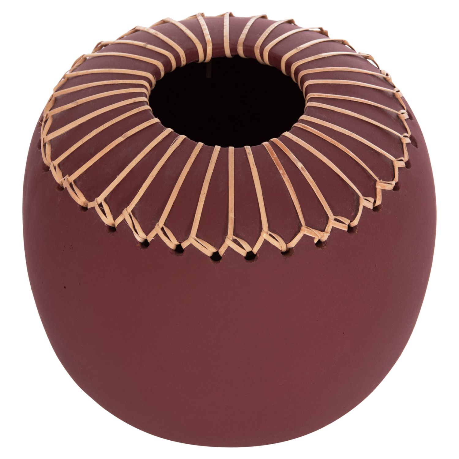 Το χειροποίητο επιτραπέζιο διακοσμητικό βάζο LENNOX είναι ένα όμορφο διακοσμητικό στοιχείο για κάθε χώρο. Είναι σχετικά κοντό αλλά φαρδύ και κατασκευασμένο εξολοκλήρου από τερακότα σε εντυπωσιακό ΒΥΣΣΙΝΙ χρώμα ενώ το στόμιο είναι διακοσμημένο με μια πλέξη από φυσικό rattan. Ιδανικό για πληθώρα χρήσεων και χώρων.