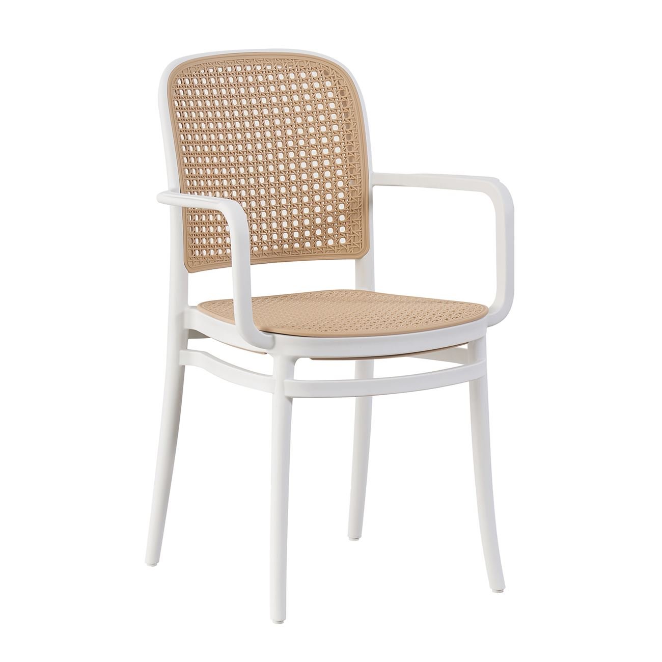 FLORENCE Πολυθρόνα PP Άσπρο, PP Rattan Μπεζ, Στοιβαζόμενη