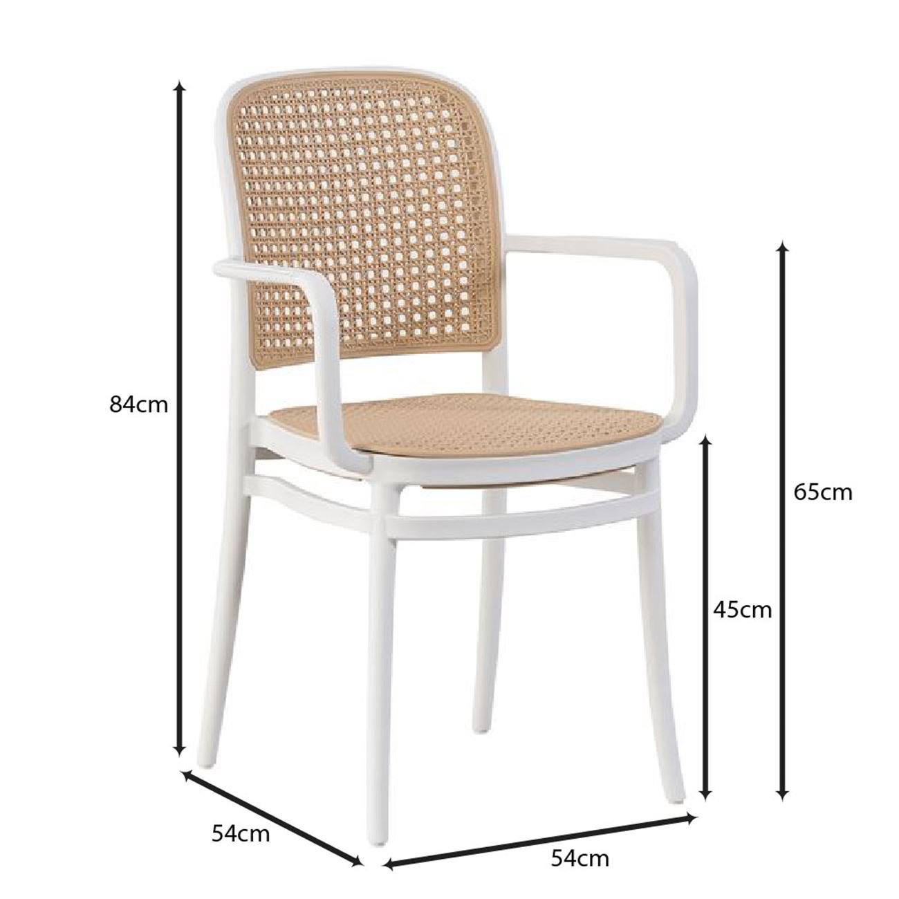 DAFNE Πολυθρόνα Τραπεζαρίας Κήπου Στοιβαζόμενη, PP Rattan Look UV Protection, Άσπρo
