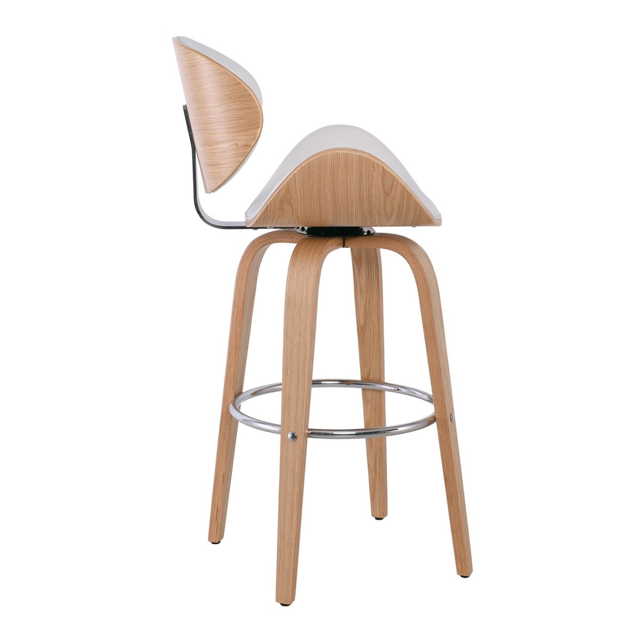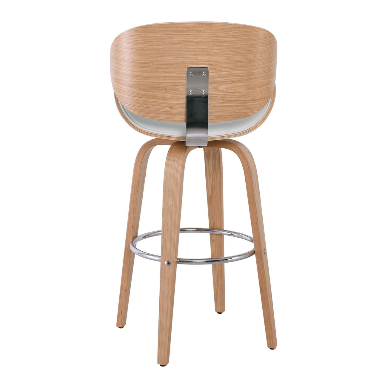 GOMEZ Σκαμπό BAR με Πλάτη, Απόχρωση Φυσικό, PU Άσπρο, Περιστρεφόμενο