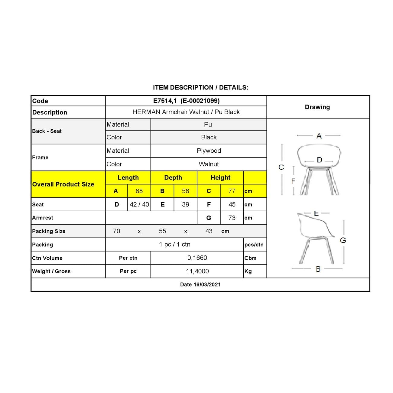HERMAN Πολυθρόνα Καρυδί – Pu Μαύρο