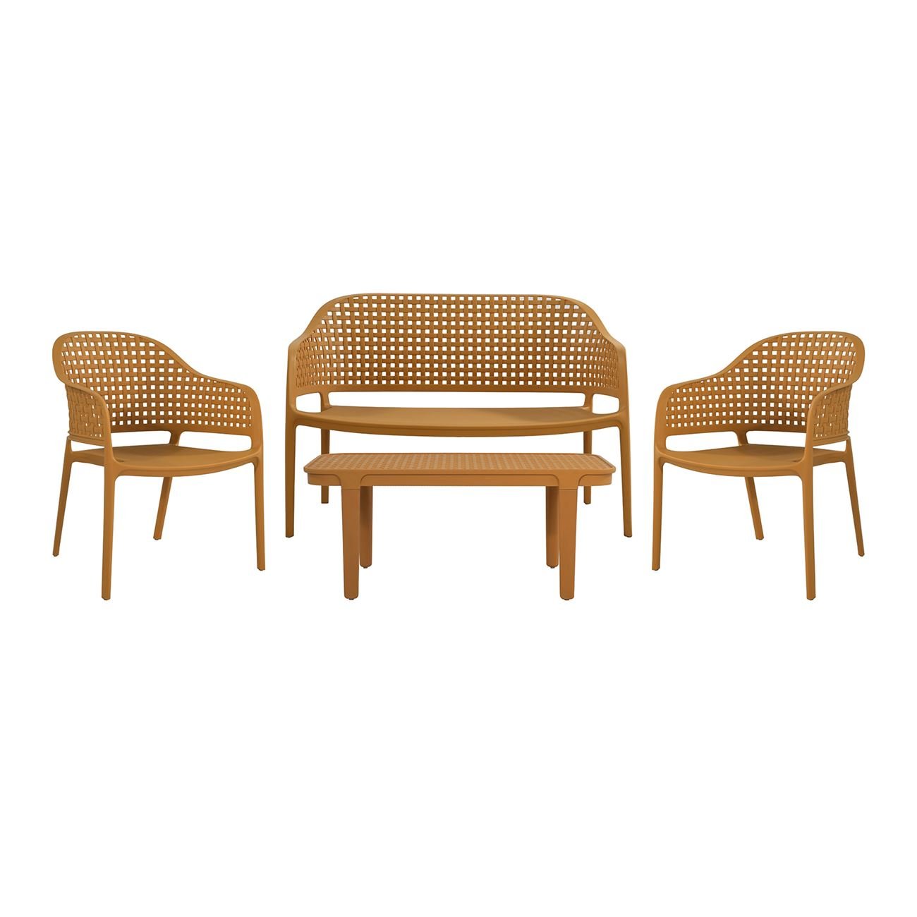 MALAGA Set Σαλόνι Κήπου PP-UV Κροκί: Καναπές + 2 Πολυθρόνες + Τραπεζάκι