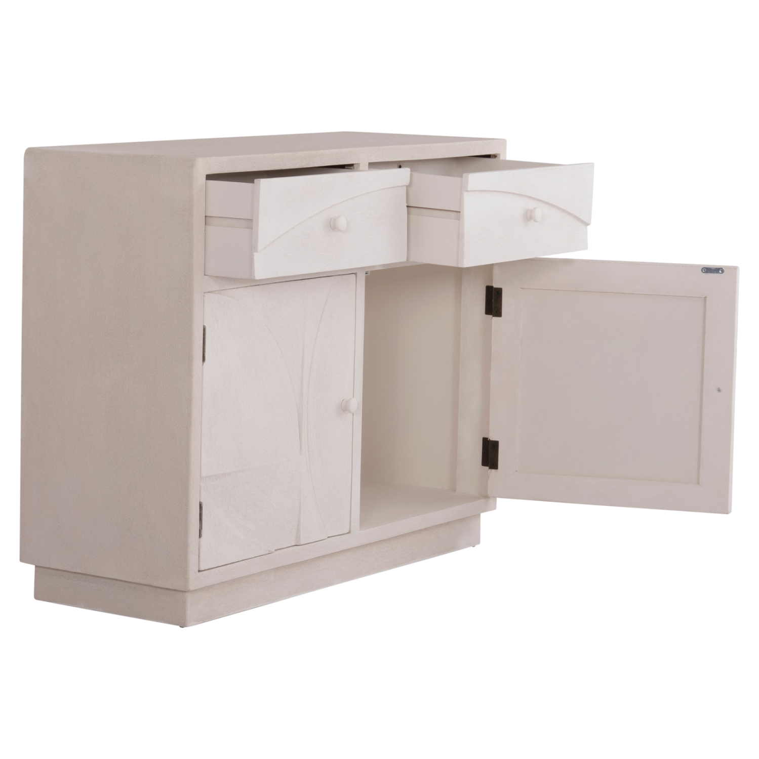 Ο χειροποίητος μπουφές αυτός είναι εξολοκλήρου κατασκευασμένος από MDF σε ΥΠΟΛΕΥΚΟ χρώμα με υφή σαγρέ τσιμέντου, που αποτελεί την πιο σύγχρονη τάση στον τομέα του interior design. Διαθέτει 2 συρτάρια στο επάνω μέρος και αποθηκευτικό χώρο από κάτω που κλείνει με δύο πόρτες. Ξεχωρίζει για τα ανάγλυφα σκαλιστά σχέδια, που του δίνουν μια άλλη “οπτική”. Τι είναι όμως ο μπουφές;
