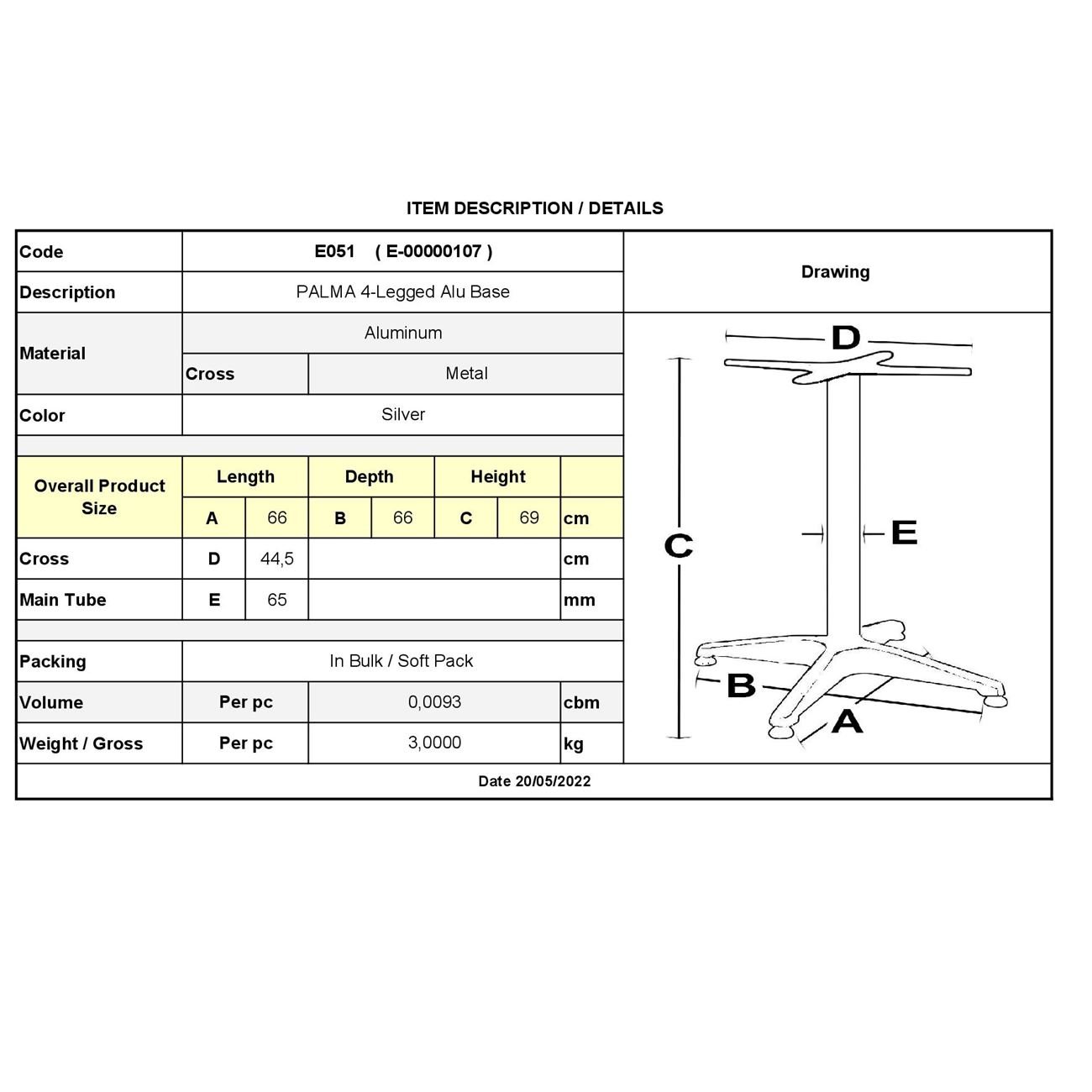 Ε051 PALMA Βάση 4-Νυχη Αλουμινίου 2,30kg