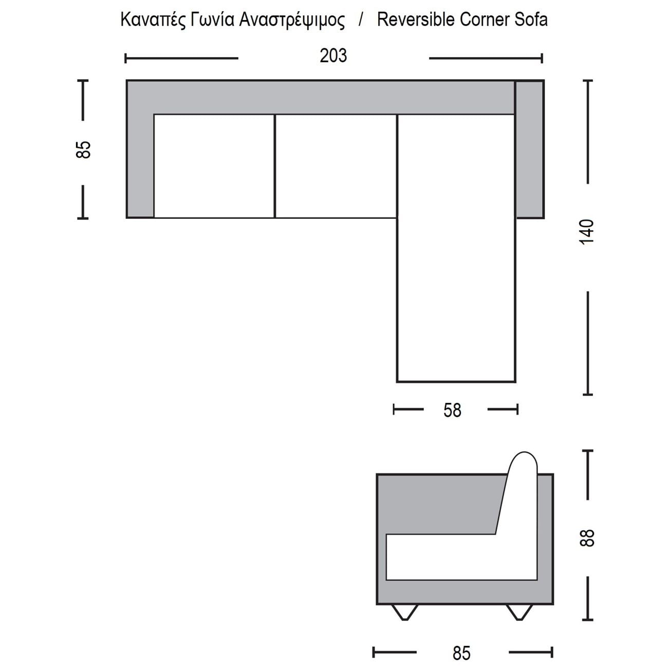203x140x85cm ‘Ύψος 88 cm