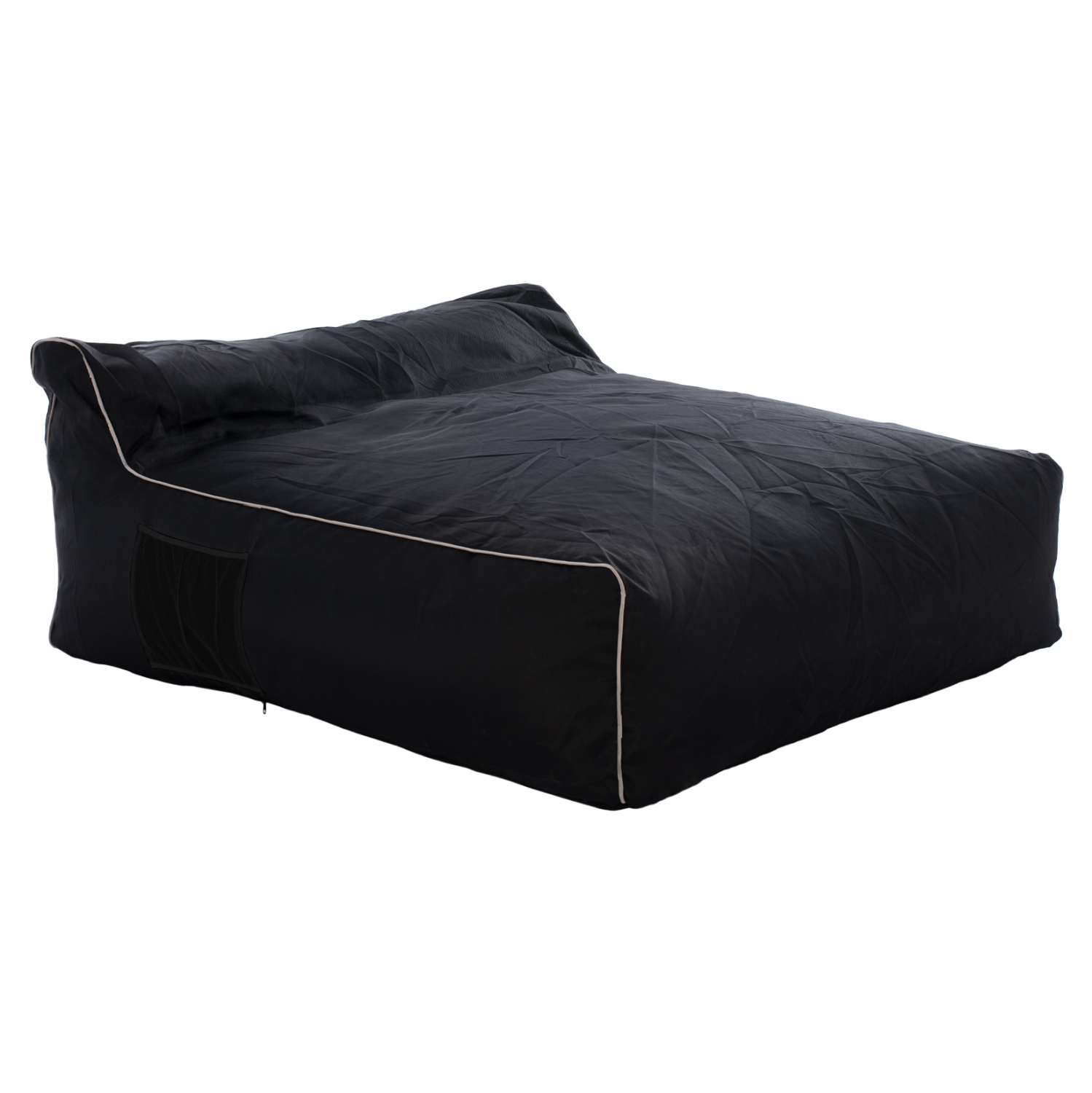 Επαγγελματικό πουφ δύο ατόμων, κατασκευασμένο από textline 2×1 σε μαύρη απόχρωση, πολύ μεγάλης αντοχής στον ήλιο, την υγρασία και την τριβή.