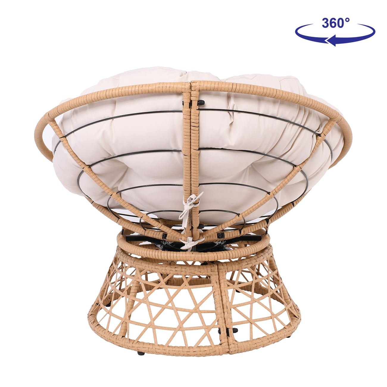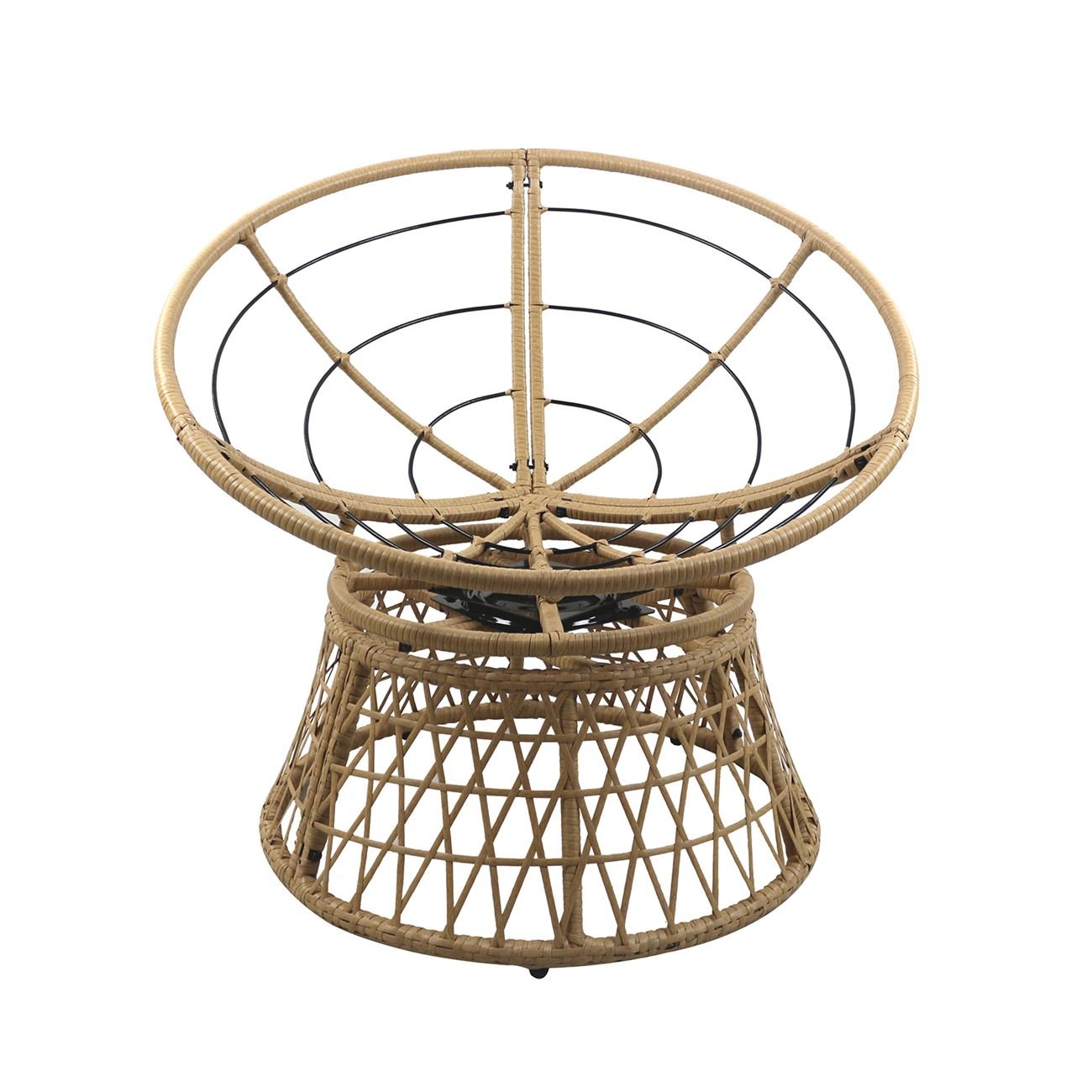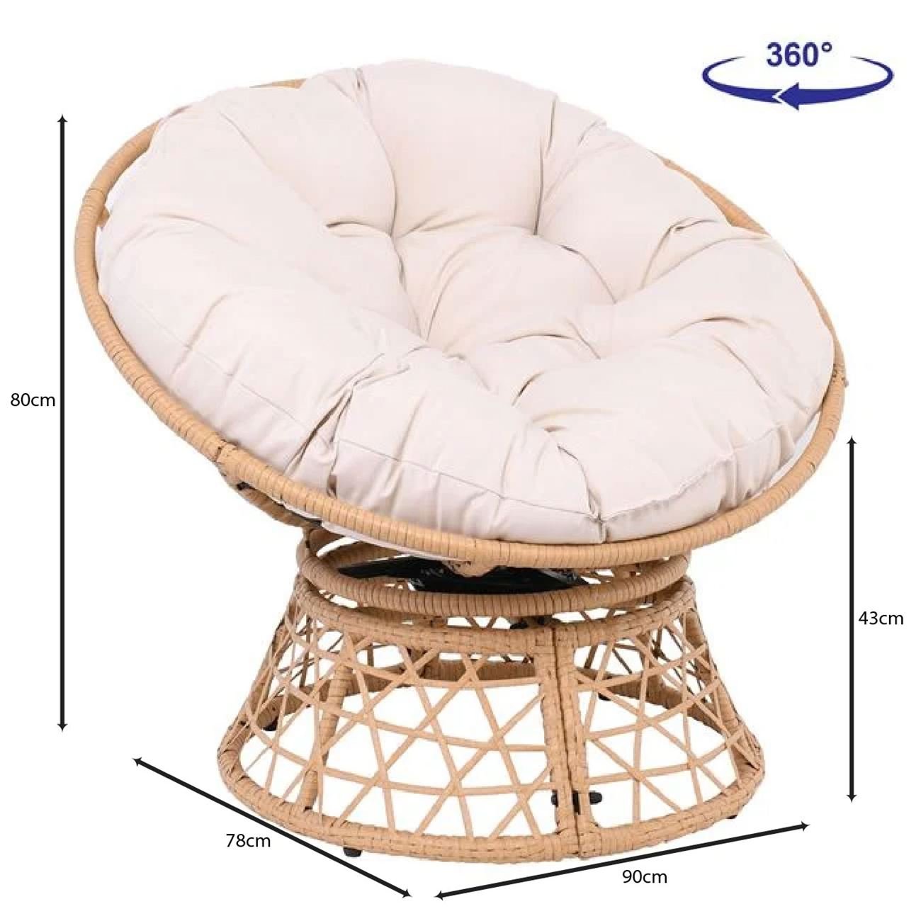 ROLLY Πολυθρόνα Κήπου-Βεράντας Περιστρεφόμενη Μεταλλική, Wicker Φυσικό, Μαξιλάρι Εκρού
