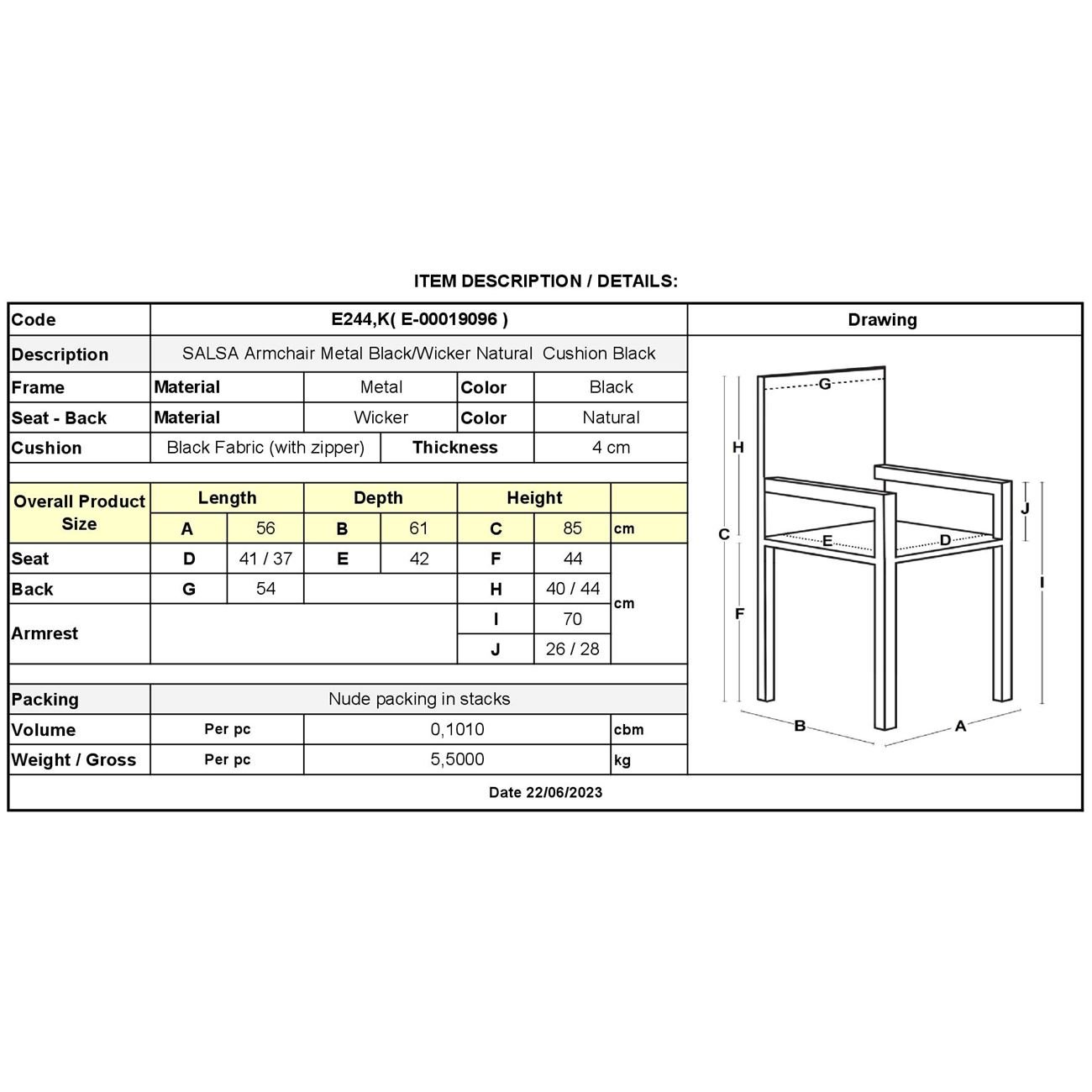 Ε244,Κ SALSA Πολυθρ.Μεταλ.Μαύρο/Wicker Φυσικό, Μαξ.Μαύρο