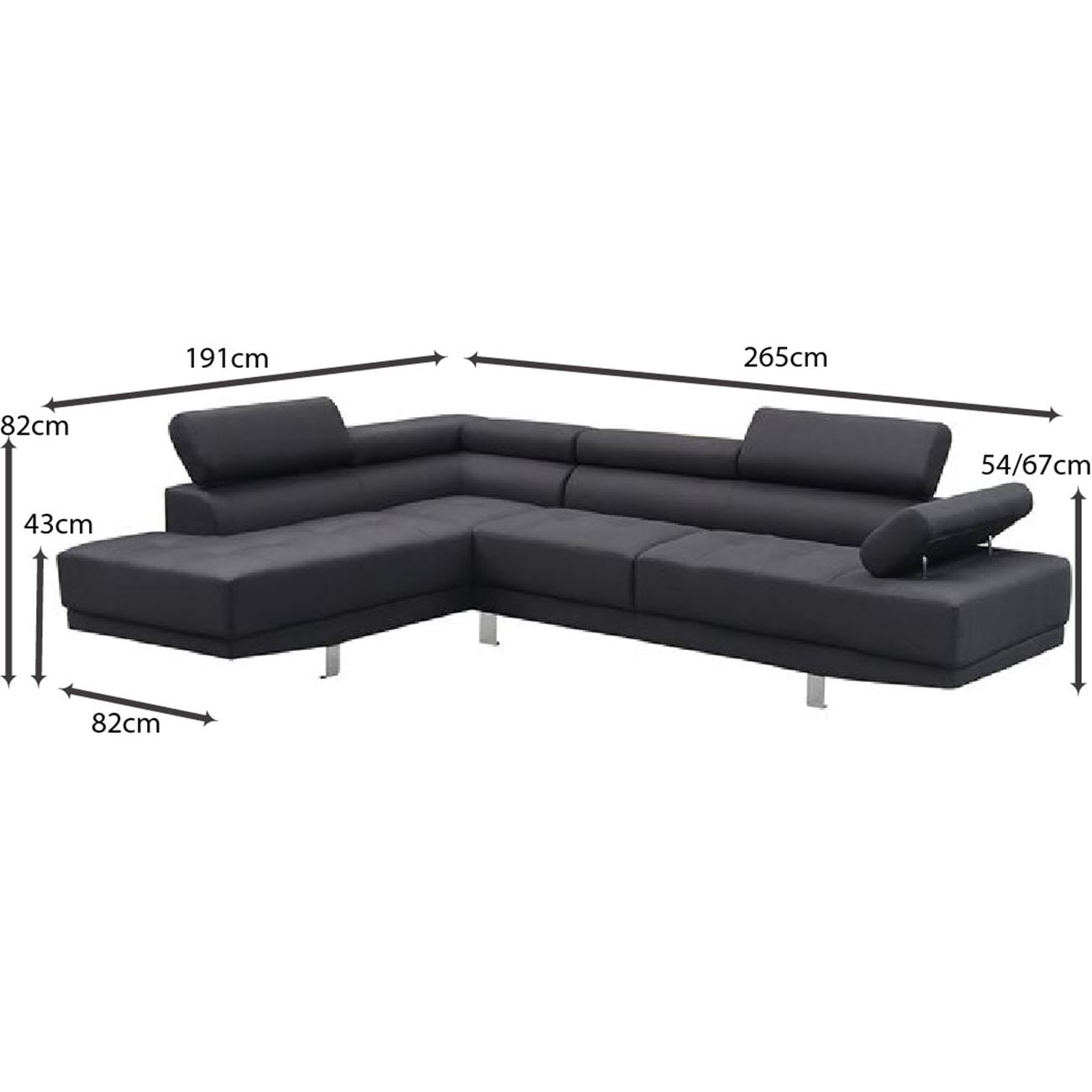 SECTOR Καναπές Σαλονιού Δεξιά Γωνία, Ανακλινόμενα Κεφαλάρια, Ύφασμα Μαύρο