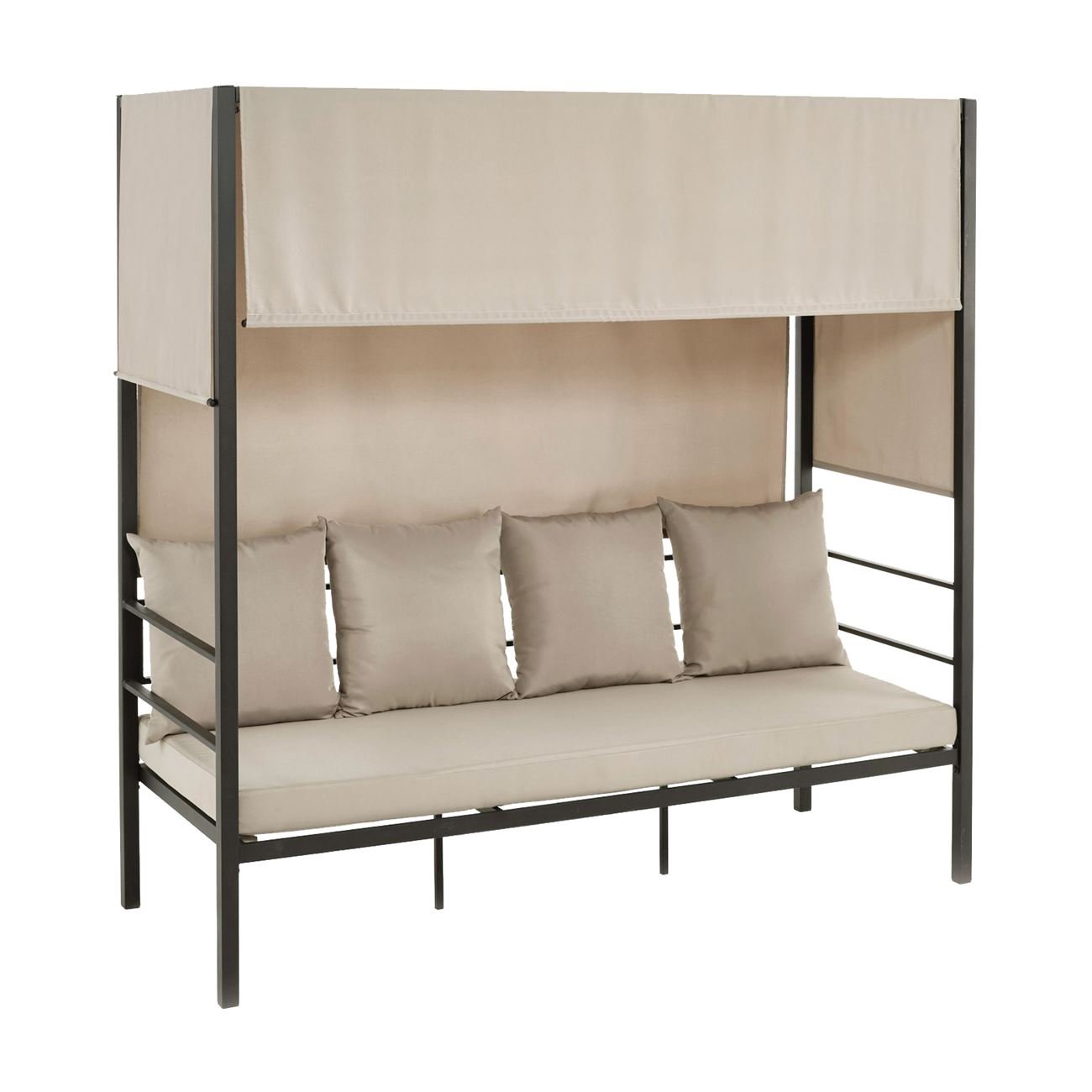 SKY Καναπές – Κρεβάτι Κήπου Εξωτερικού Χώρου, Μέταλλο Βαφή Ανθρακί, Ύφασμα Εκρού