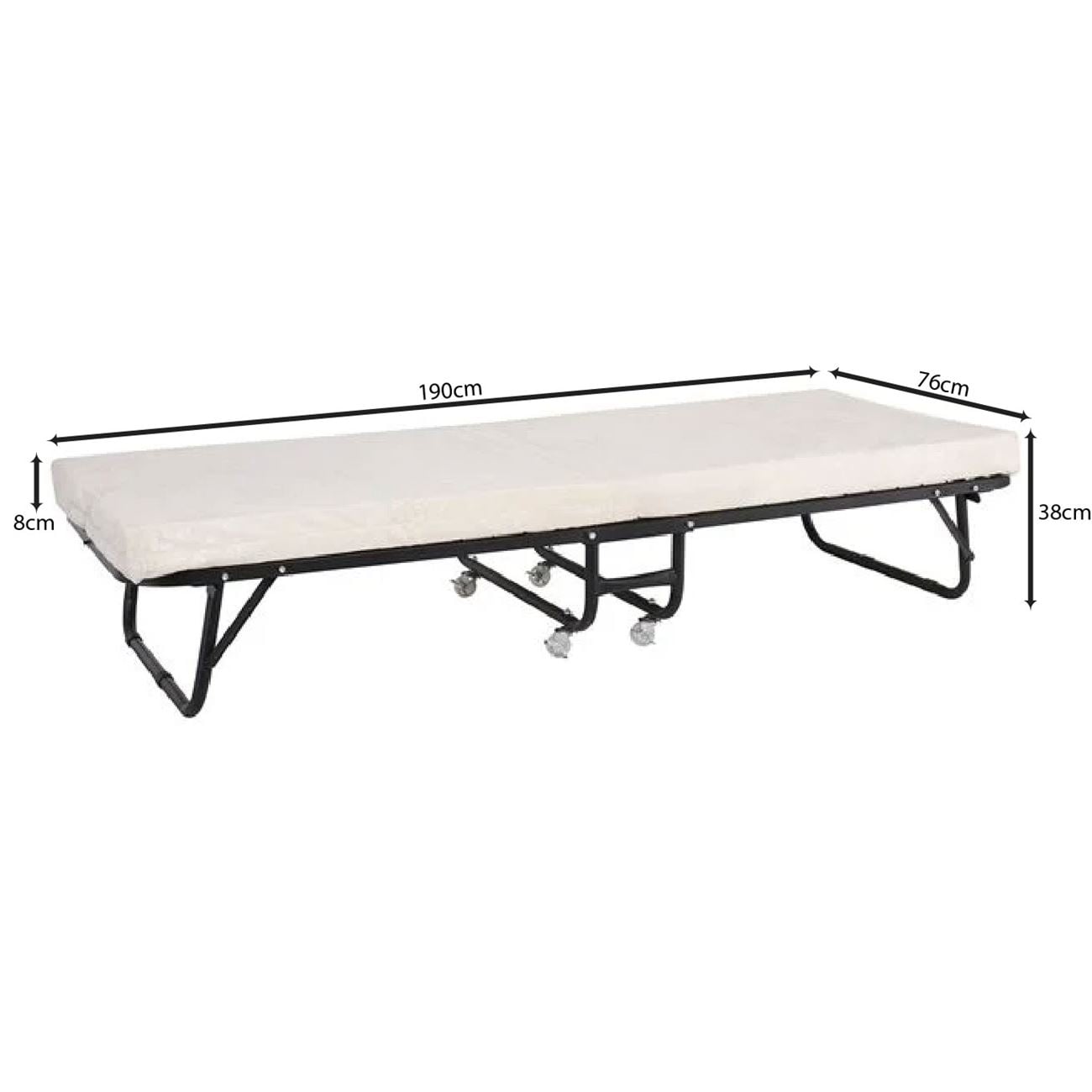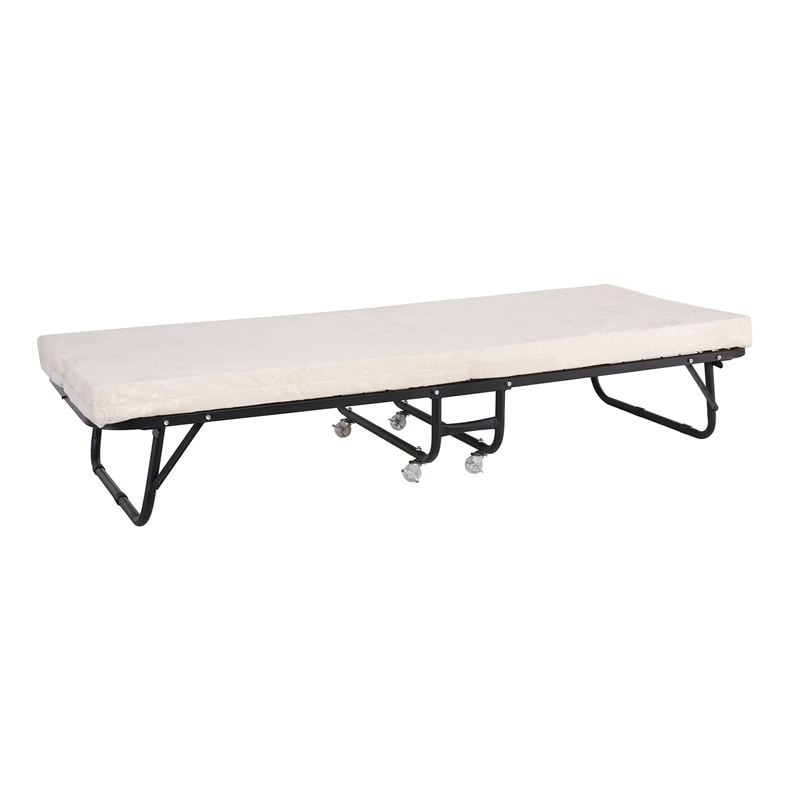 SPAN Κρεβάτι Πτυσσόμενο Βοηθητικό Μέταλλο Βαφή Μαύρο, Στρώμα 8cm foam