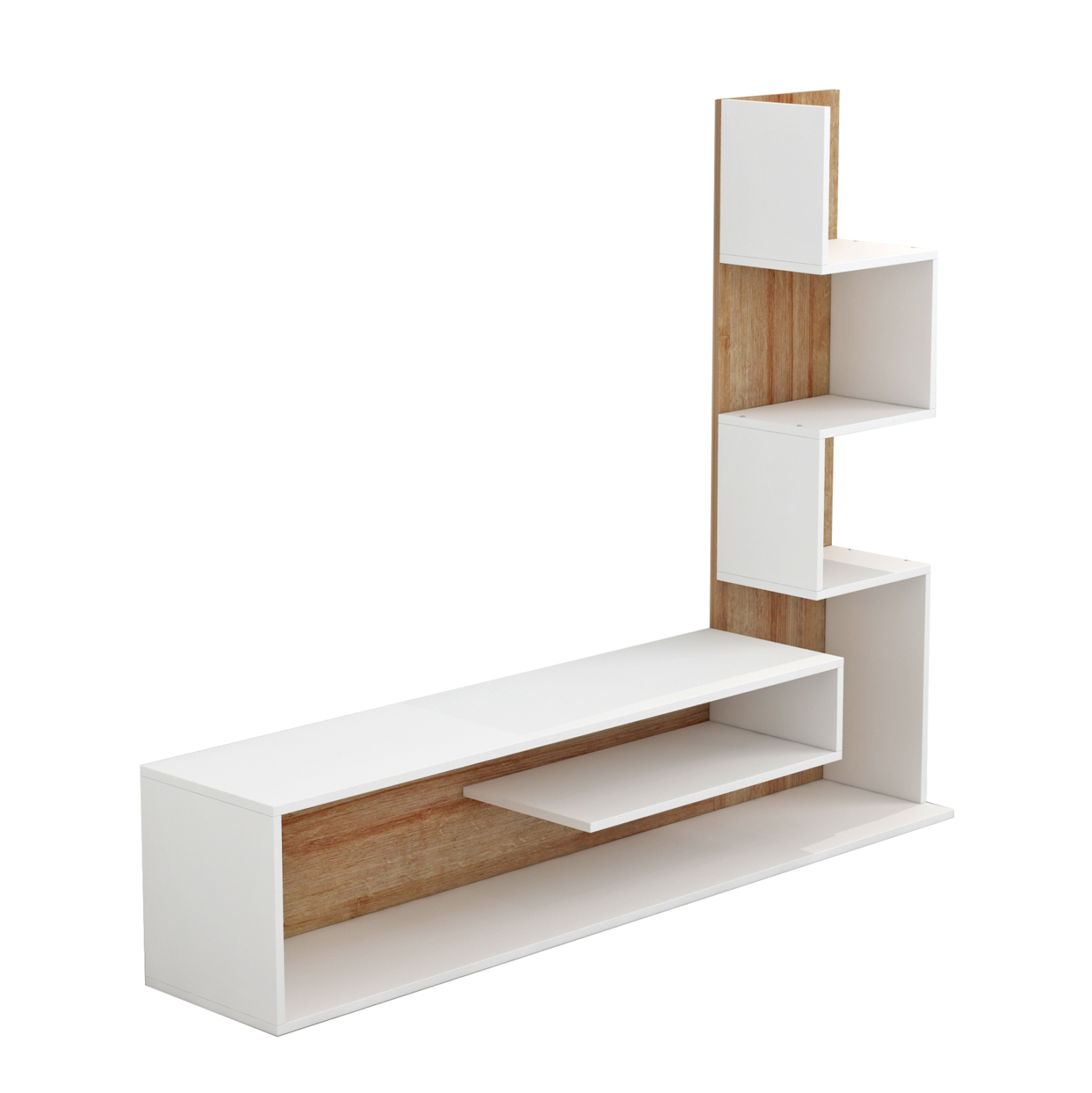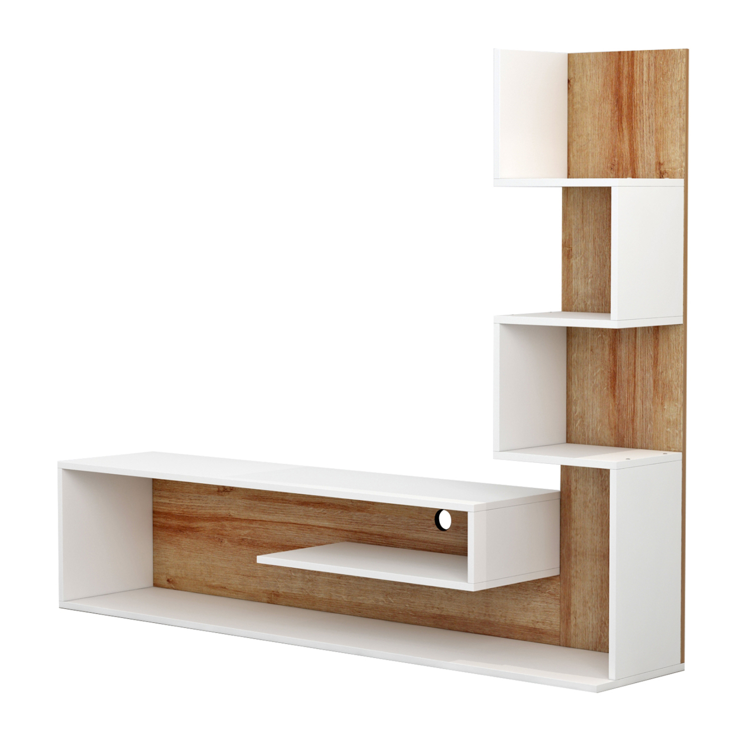 Το EDELIE είναι μια μοντέρνα και πρακτική σύνθεση τηλεόρασης σε ΛΕΥΚΟ και ΦΥΣΙΚΟ χρώμα, που θα ομορφύνει το σαλόνι σας! Αποτελείται από 2 μέρη. Την πλευρά της τηλεόρασης που είναι χαμηλή με ένα ράφι κάτω από την κύρια επιφάνεια και μια στήλη με ράφια στην δεξιά πλευρά. Το design είναι σε μοντέρνα γραμμή και είναι σίγουρο ότι οι ανοιχτοί αποθηκευτικοί χώροι θα εντυπωσιάσουν και τους πιο δύσκολους, τόσο στην όψη όσο και με την πρακτικότητά τους.