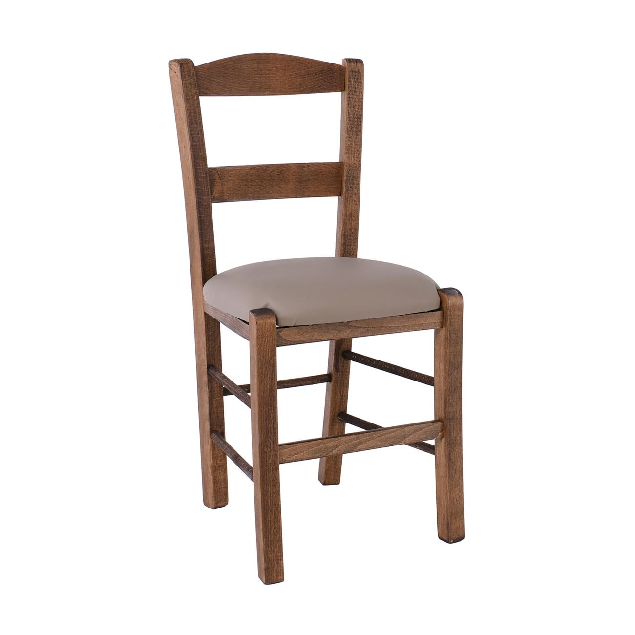 ΣΥΡΟΣ Καρέκλα Οξιά Βαφή Εμποτισμού Καρυδί, Κάθισμα Pu Cappuccino