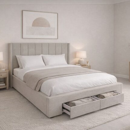 NEBRASKA Κρεβάτι Διπλό με Αποθηκευτικό Χώρο+2 Συρτάρια, για Στρώμα 160x200cm, Ύφ.Μπεζ